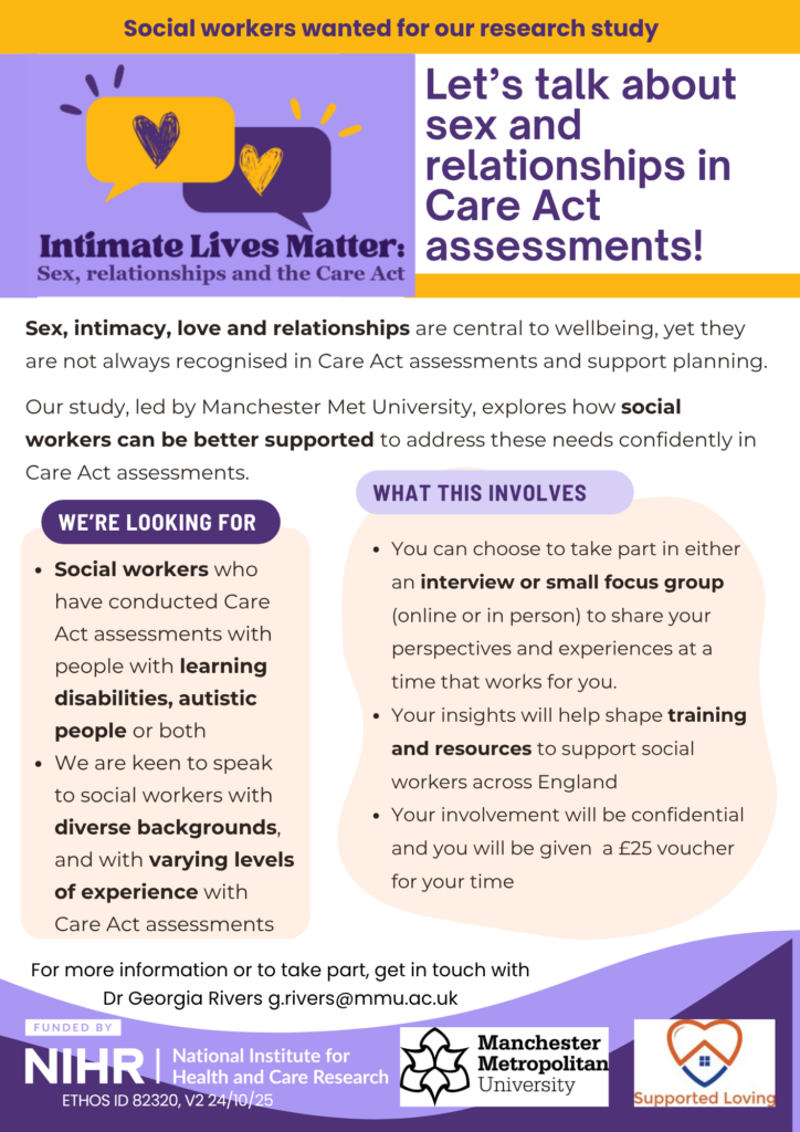 This is research project which has been designed through a partnership which includes:  NIHR – School for Social Care Research (Manchester), the Greater Manchester (GM) Health and Social Care Partnership, the Greater Manchester Social Work Academy (GMSWA), NIHR ARC- Greater Manchester, the Thomas Ashton Institute, Social Work in University of Manchester and regional service user and carer partners.